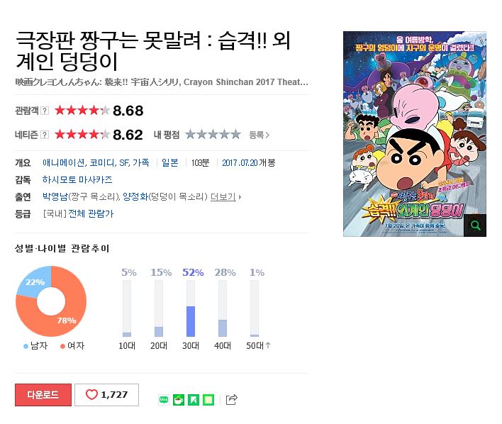 짱구는 못말려 극장판 25기-습격 외계인 덩덩이 (2017년)-우리말,일어 1080p