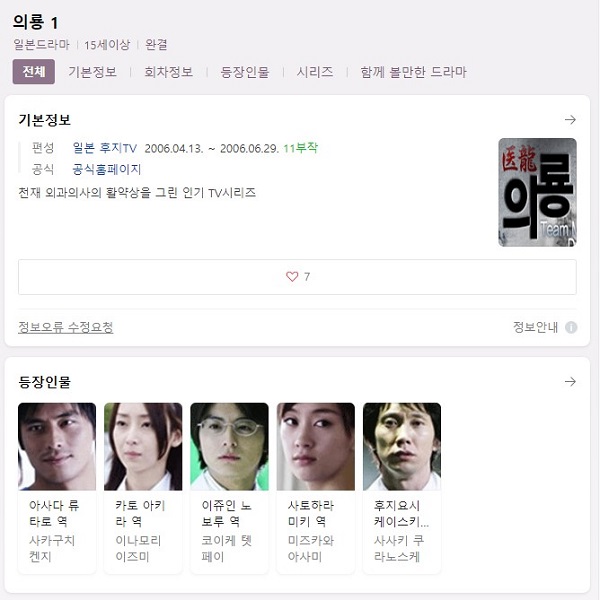 [ 의학 일드완결 +15 ] 의룡 시즌 1 1-11화 사카구치 켄지.이나모리 이즈미 외 (초고화질) 자막포함 2006