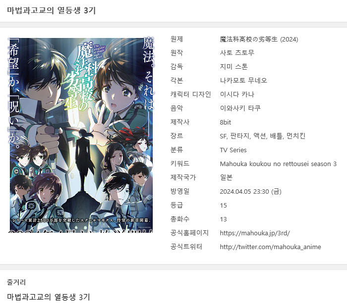 • [인생] 마법과 고교의 열등생 [3기] 01-13완결 -모험 능력 SF 액션-