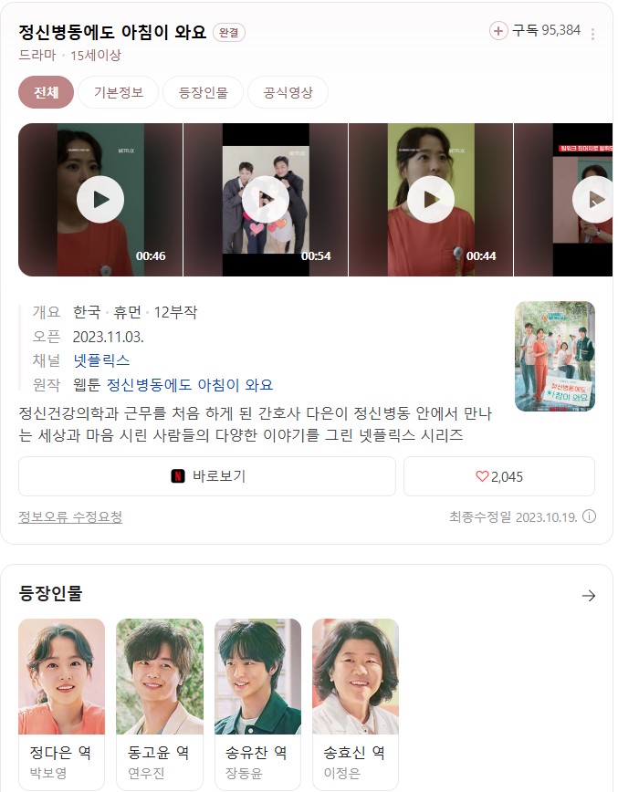 [한드] 정신병동에도 아침이 와요 12부작완결 1080p