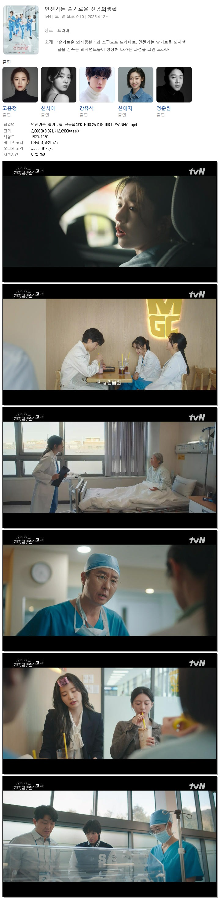 [TVN] 언젠가는 슬기로울 전공의생활.E03.250419.1080p.WANNA[고윤정, 신시아]