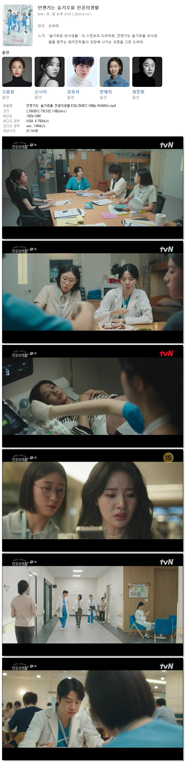[TVN] 언젠가는 슬기로울 전공의생활.E06.250427.1080p.WANNA[고윤정, 신시아].mp4