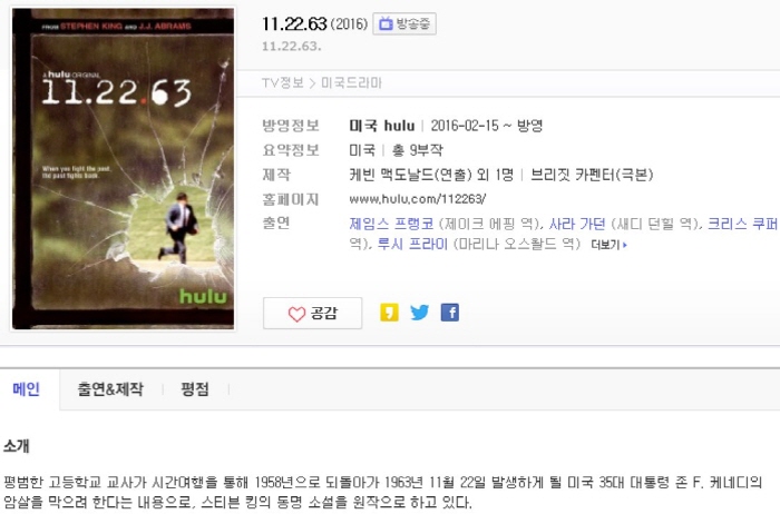 • 11 22 63 시즌1 총8화 완결 720p 고화질 한글자막