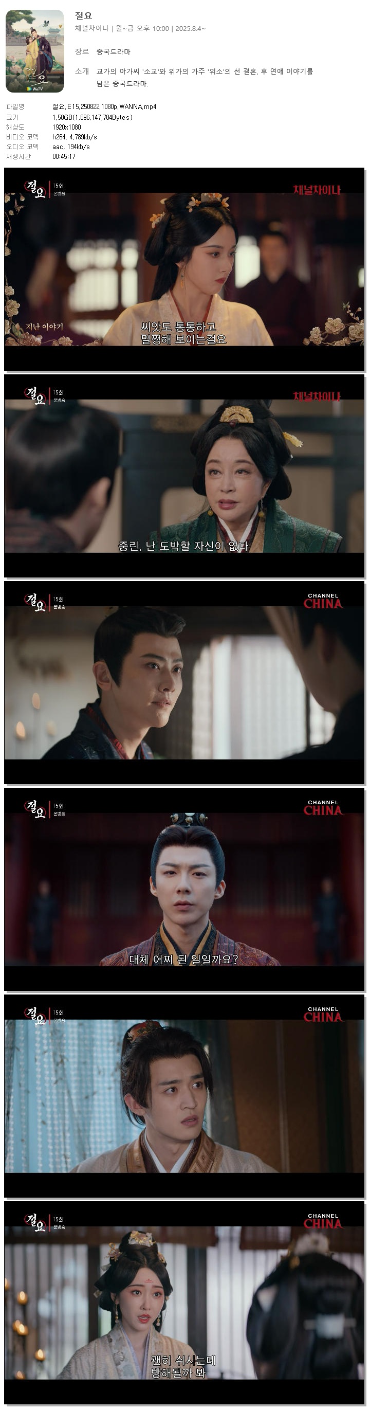 [채널차이나] 절요.E15.250822.1080p.WANNA[송조아, 류우녕]