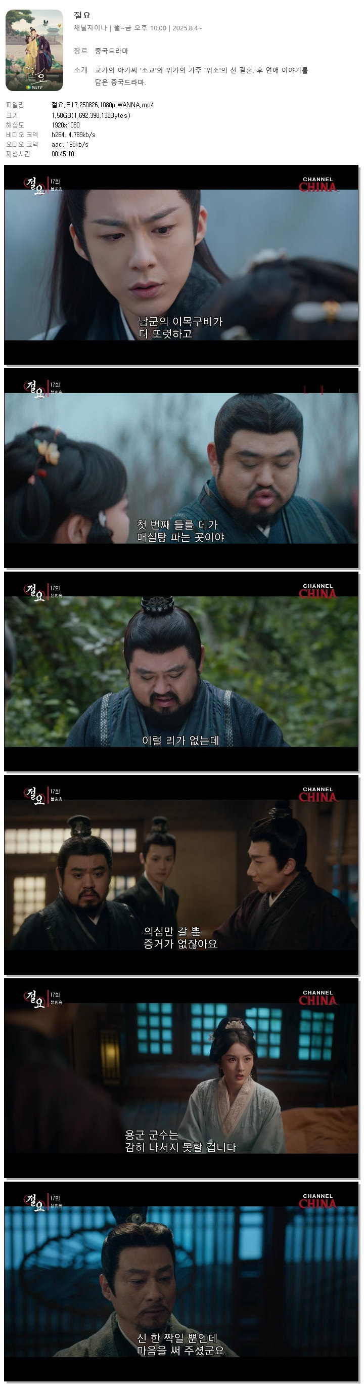 [채널차이나] 절요.E17.250826.1080p.WANNA[송조아, 류우녕]
