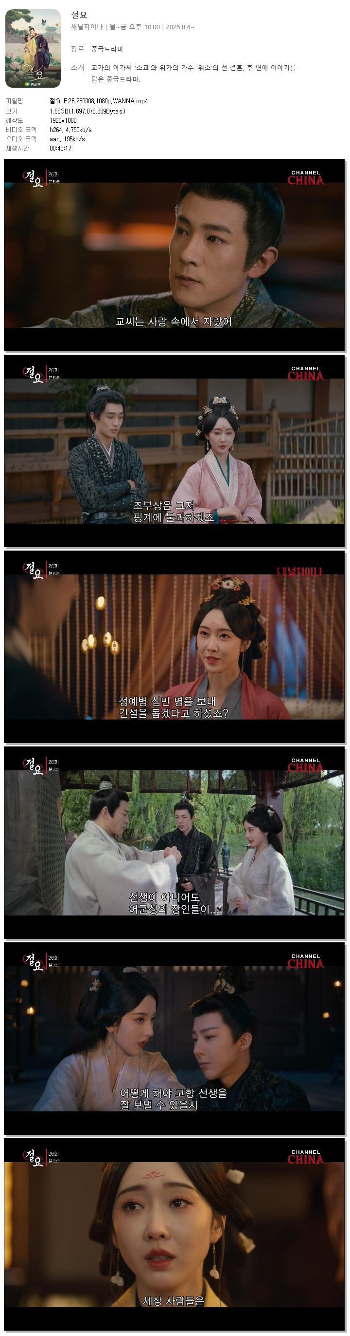 [채널차이나] 절요.E26.250908.1080p.WANNA[송조아, 류우녕]
