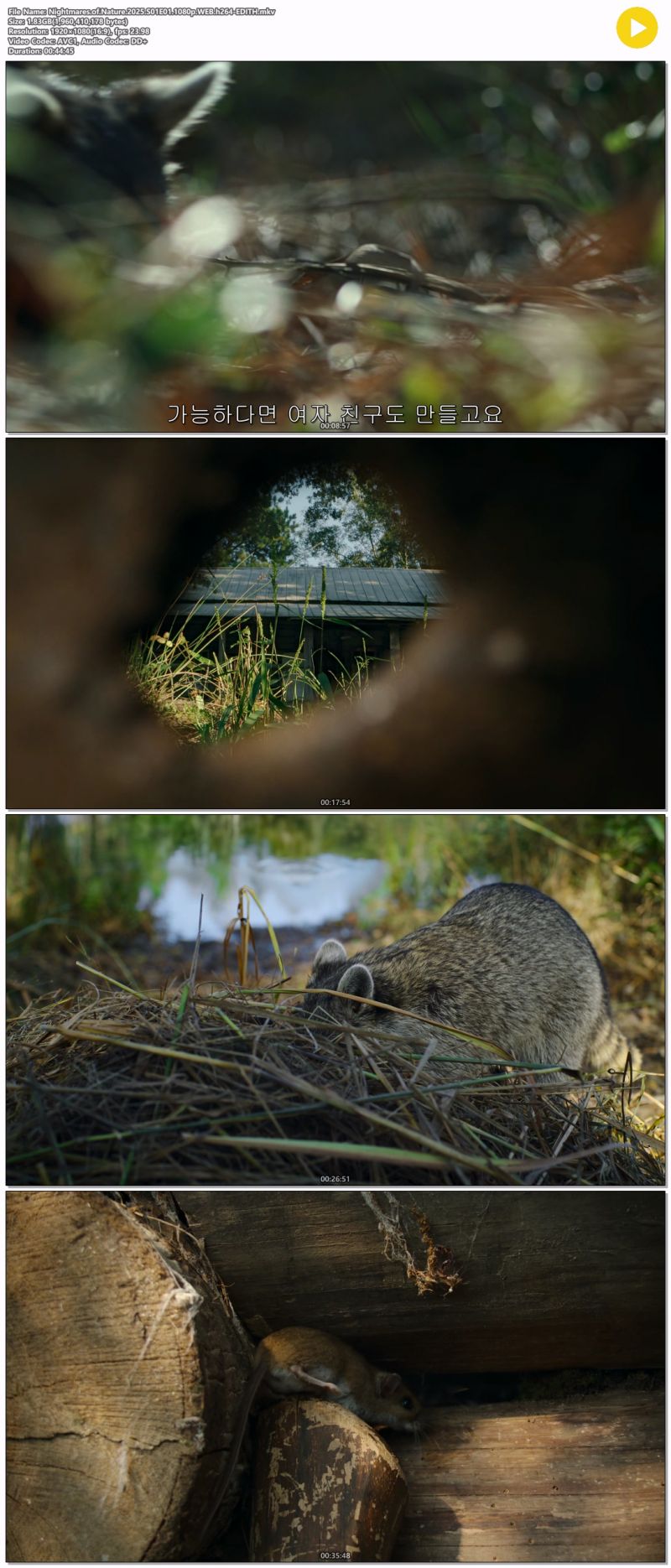 • [다큐] 자연의 악몽 숲속의 오두막.3부작완결.2025.1080p.한글자막