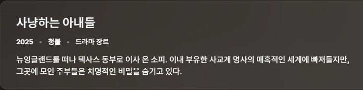 • [미드-19] 사냥하는 아내들 시즌1.8부작완결.2025.1080p.한글자막