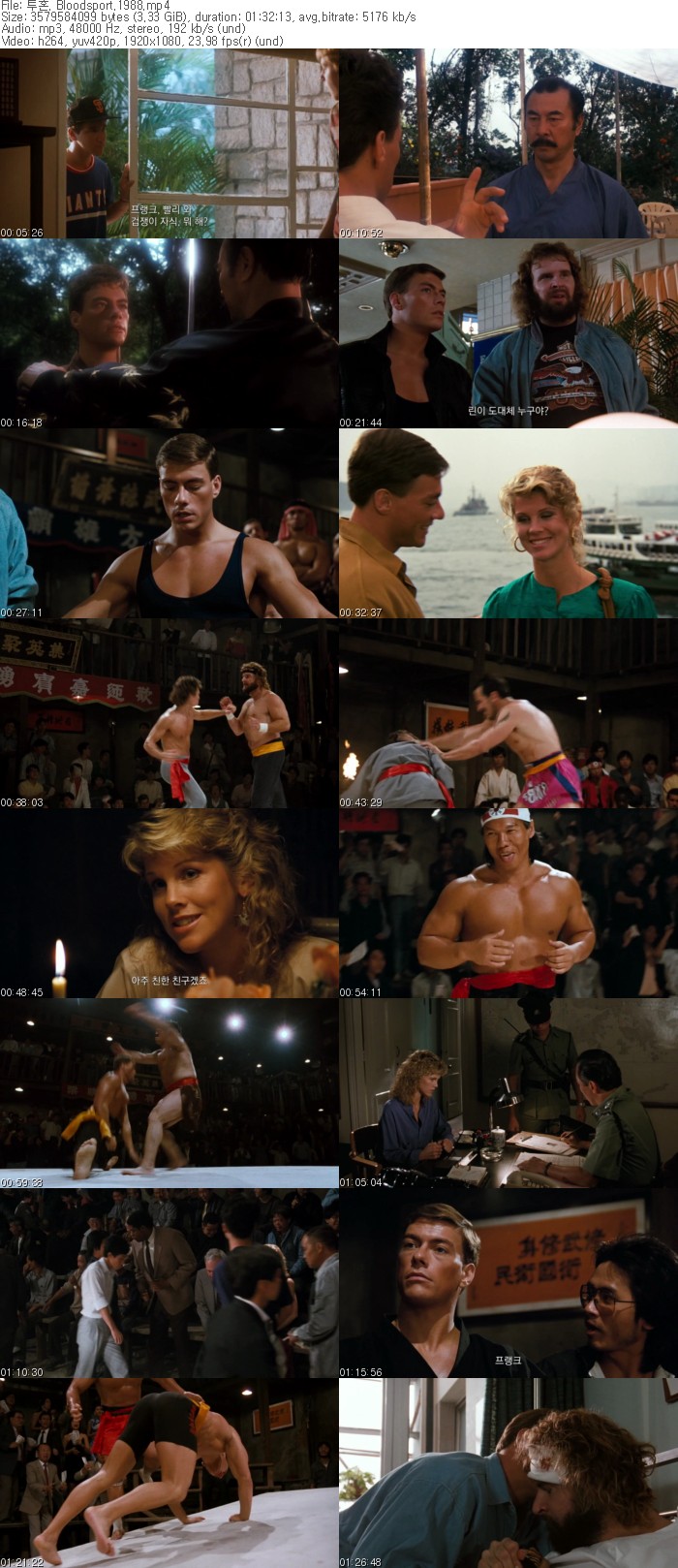 투혼 (1988) 장클로드 반담, 볼로 영, 도널드 깁, 한글자막
