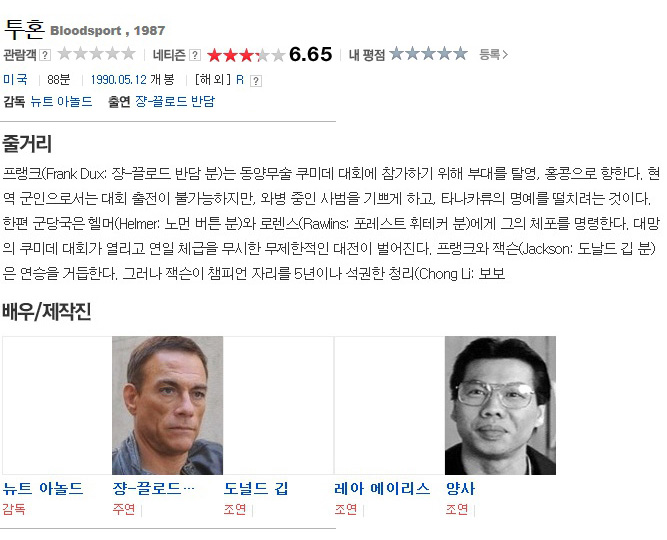 • 투혼 (1988) 장클로드 반담, 볼로 영, 도널드 깁, 한글자막