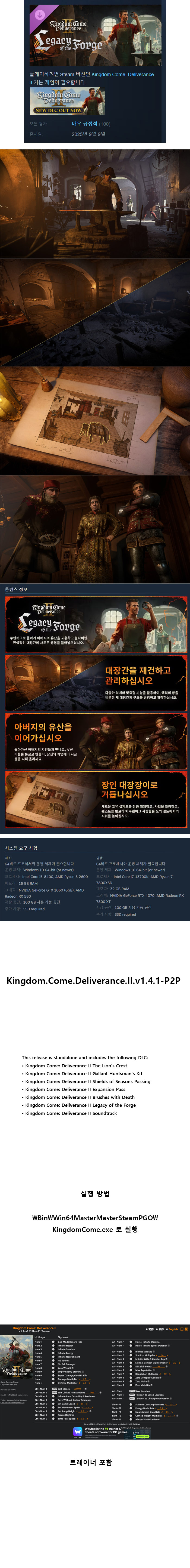 [무설치 실행] 킹덤 컴 V1.4.1 딜리버런스2-대장간의 유산+트레이너 한글