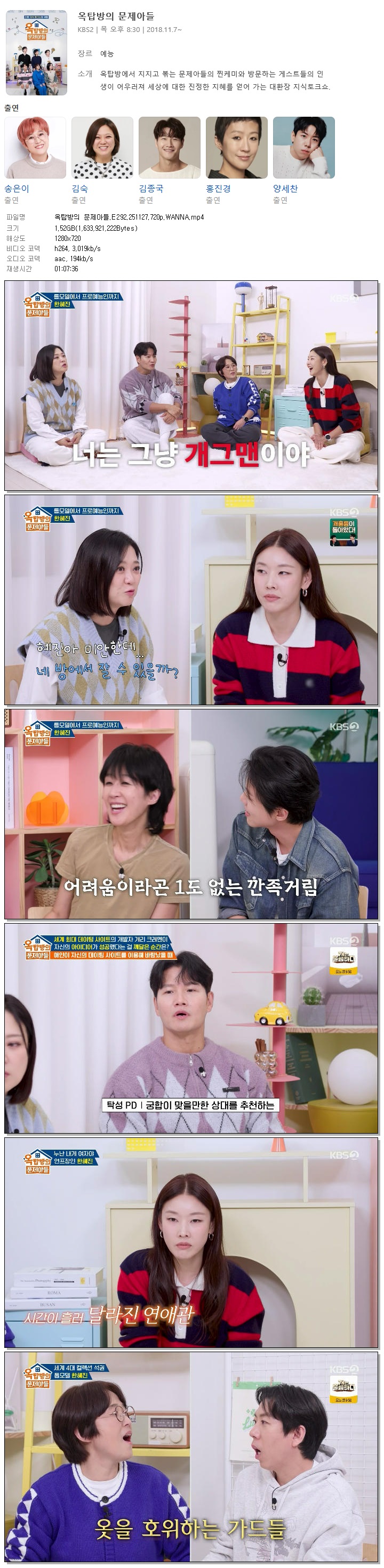 [KBS2] 옥탑방의 문제아들.E292.251127.720p.WANNA[한혜진].mp4