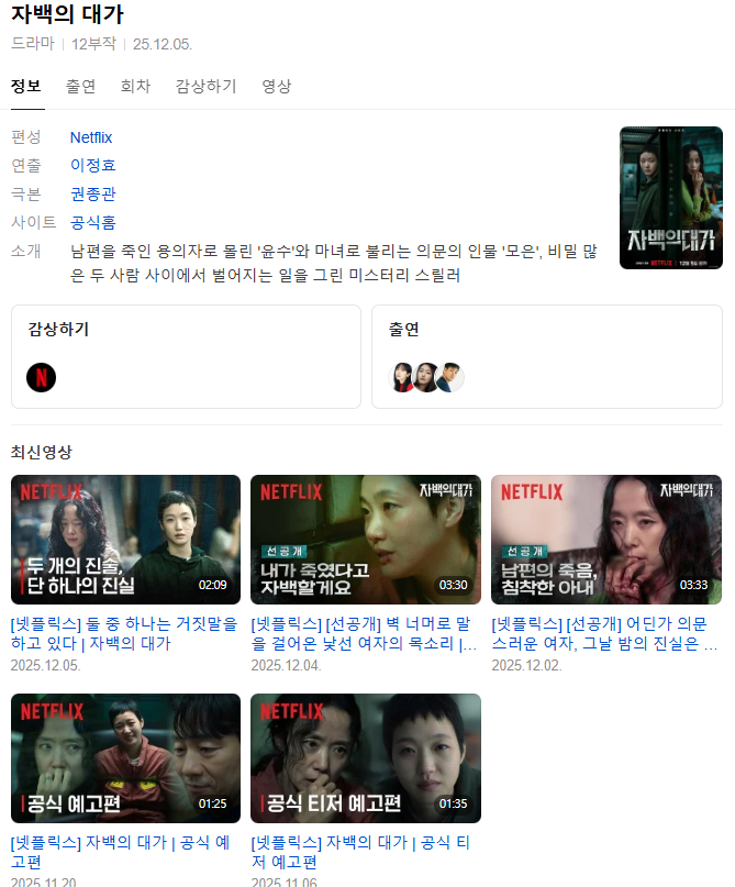 [한드] 12월5일 전또연 김꼬은 자 백 의 대 가 12부작완결 초고화질 1080p