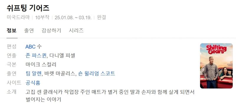 쉬프팅기어즈(Shifting Gears) 시즌1 10부작.완결