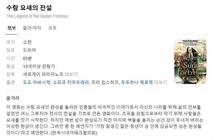 • [영화-드라마] 수람 요새의 전설.Ambavi Suramis Tsikhitsa.1985.1080p.한글자막