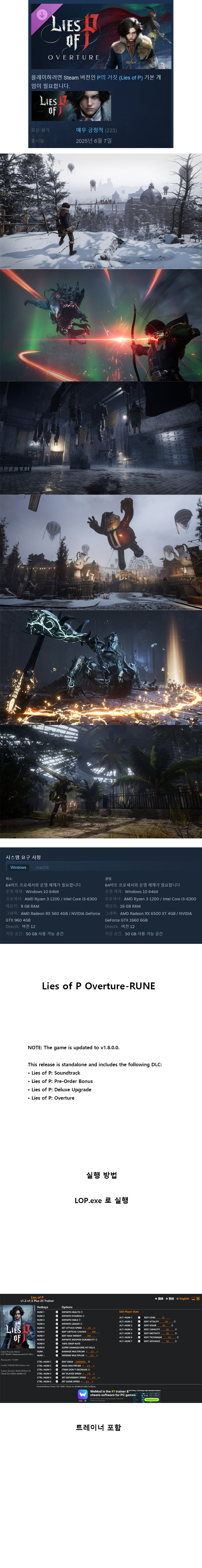 [무설치] 신규DLC P의거짓-오버추어+트레이너 한글