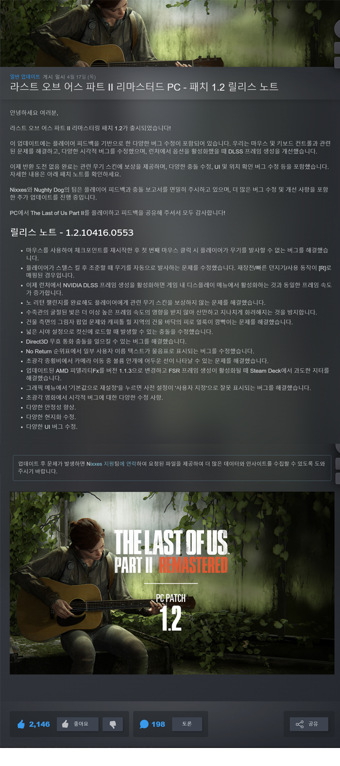 • [무설치] -패치1.2-라스트 오브 어스2 리마스터트레이너 한글