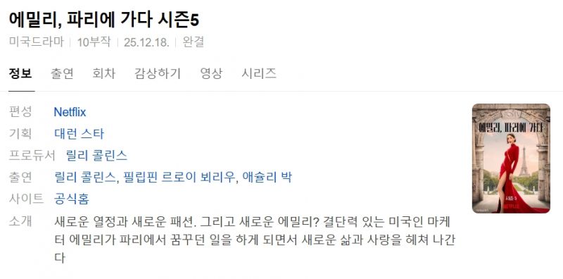 에밀리파리에가다(Emily in Paris) 시즌5 10부작.완결
