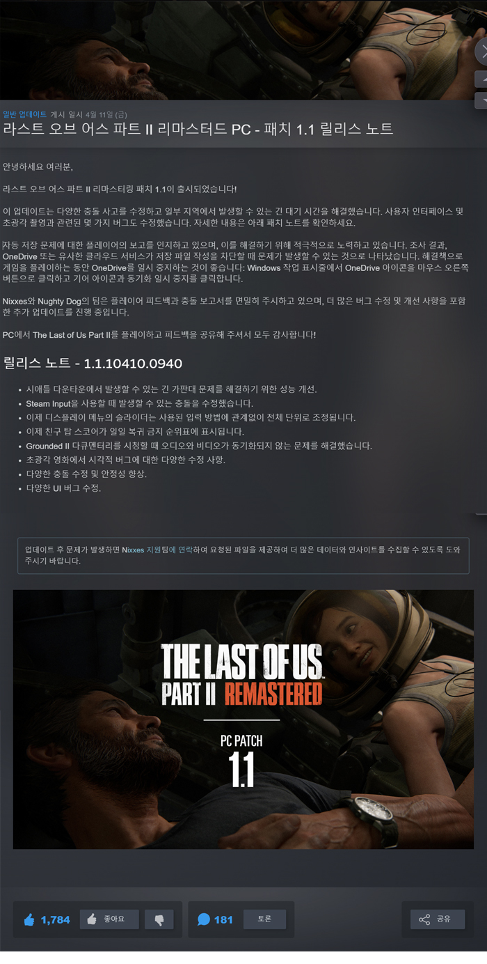 • [무설치] -패치1.1-라스트오브어스2 리마스터트레이너 한글