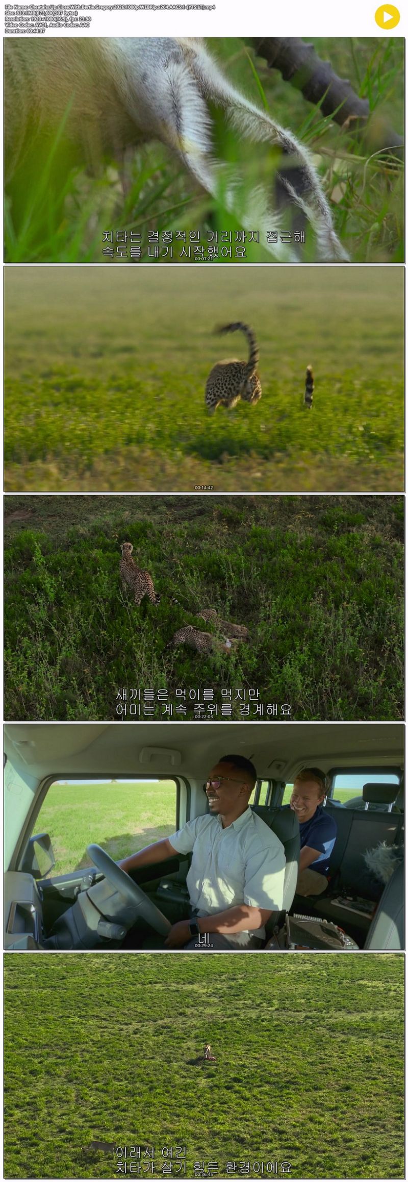 • [다큐] 버티 그레고리의 치타 클로즈 업.2026.1080p.한글자막