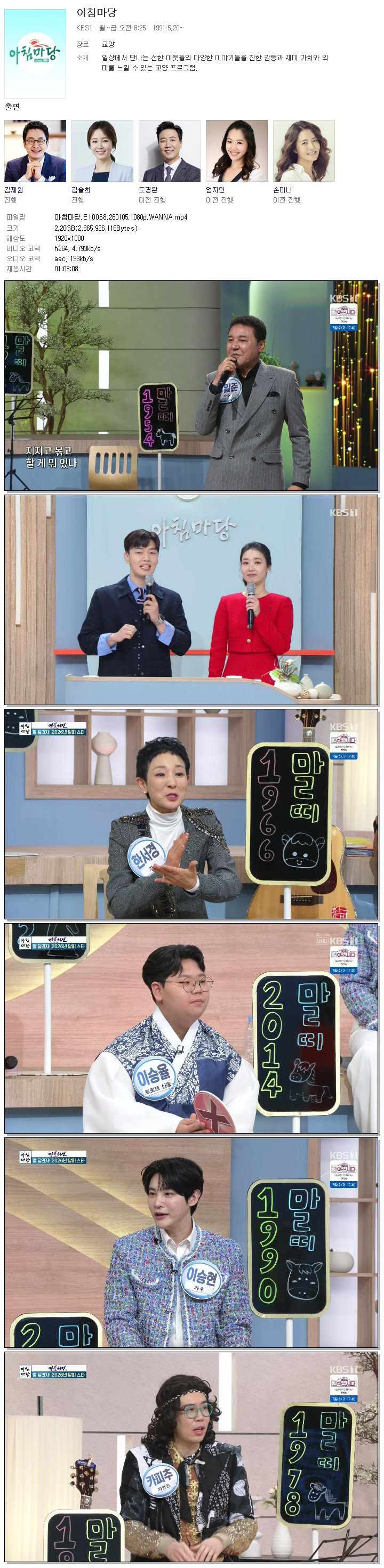 [KBS1] 아침마당.E10068.260105.1080p.WANNA[엄지인, 박철규].mp4