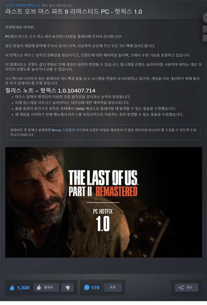 • [무설치] 라스트 오브 어스2 리마스터 V1.0.10407.714트레이너 한글