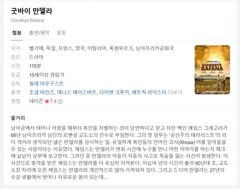 • 굿바이 만델라 (Goodbye Bafana, 2007년)-JUG 1080p 우리말,영어