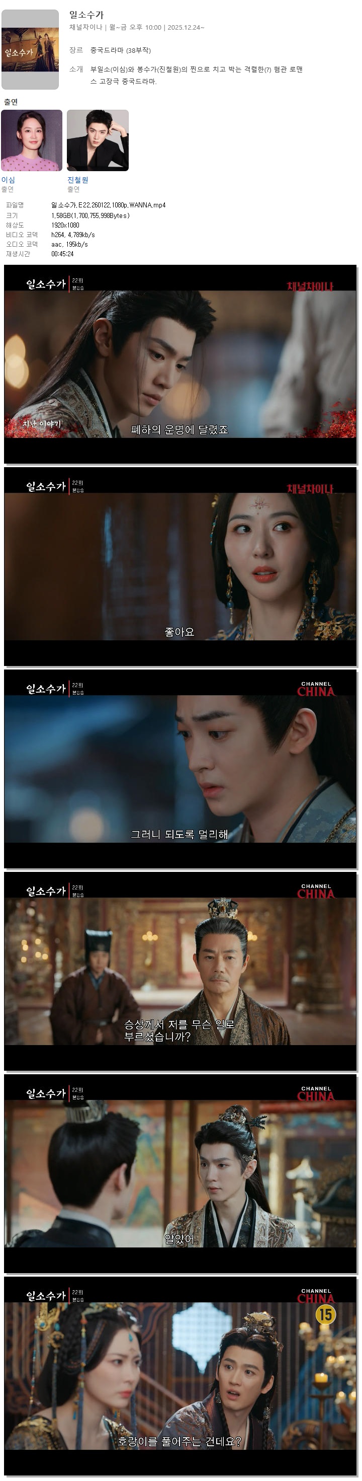 [채널차이나] 일소수가.E22.260122.1080p.WANNA[이심, 진철원].mp4