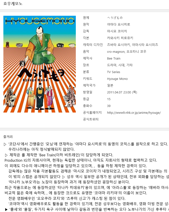 • [인생] 효우게모노 01-39완결 -시대 드라마-