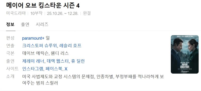 • 메이어오브킹스타운(Mayor of Kingstown) 시즌4 10부작.완결