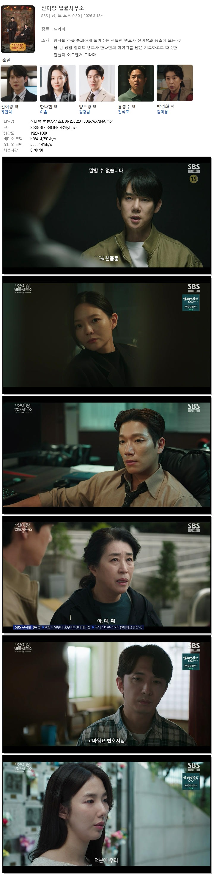 [SBS] 신이랑 법률사무소.E06.260328.1080p.WANNA[유연석, 이솜]