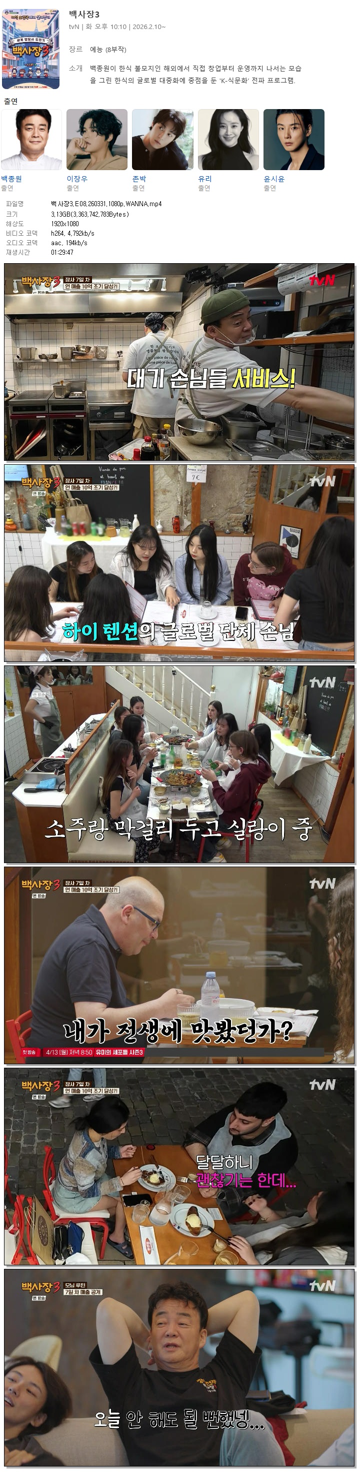 [TVN] 백사장3.E08.260331.1080p.WANNA[백종원, 이장우]