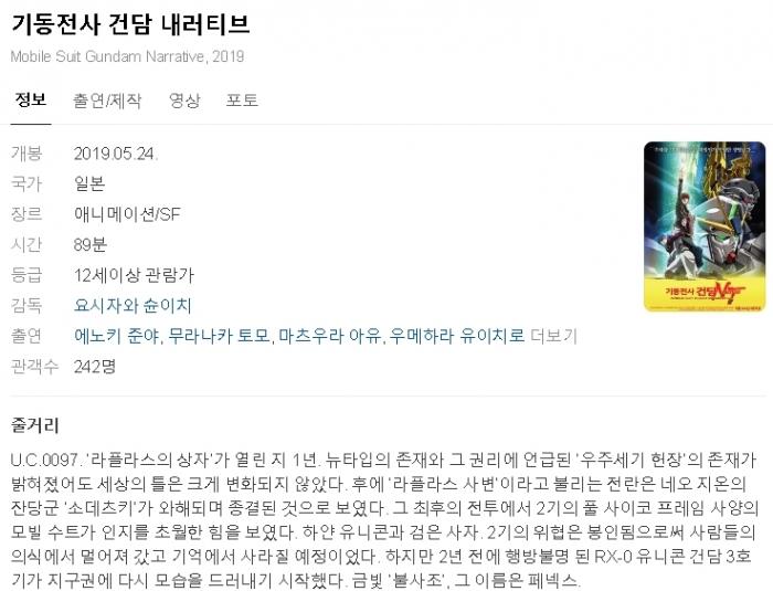 [인생] 기동전사 건담 내러티브 [극장판] -모험 SF 메카닉 액션-