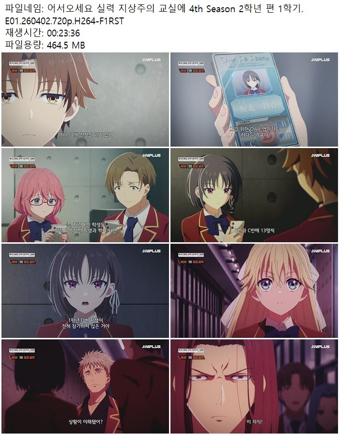 어서오세요 실력 지상주의 교실에 4th Season 2학년 편 1학기.E01.260402.720p.H264-F1RST