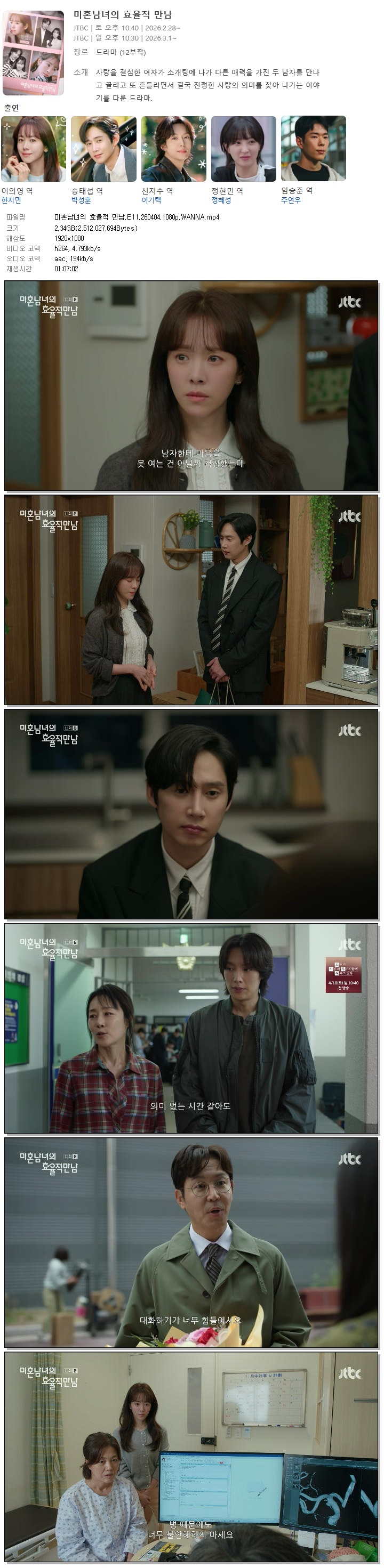[JTBC] 미혼남녀의 효율적 만남.E11.260404.1080p.WANNA[한지민, 박성훈].mp4