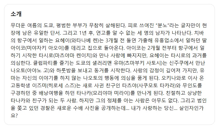 [분노] 의문의 살인사건 얼굴을 바꾼 범인 7명의 용의자 자체자막