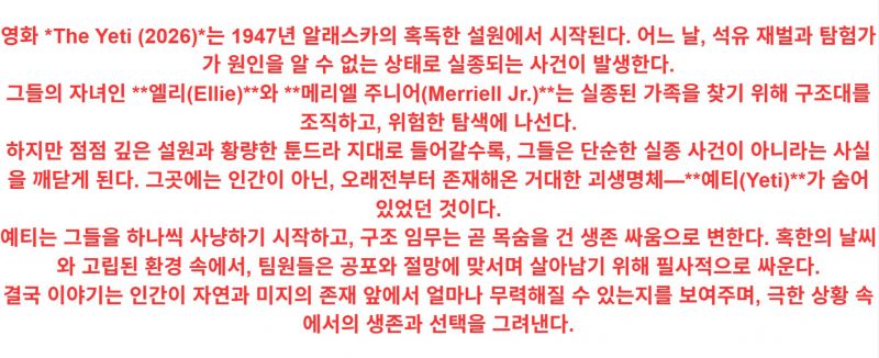 4월 깨어난 전설의 설산 괴물 [ THE 예 ㅌl ] 1080p 완벽자막