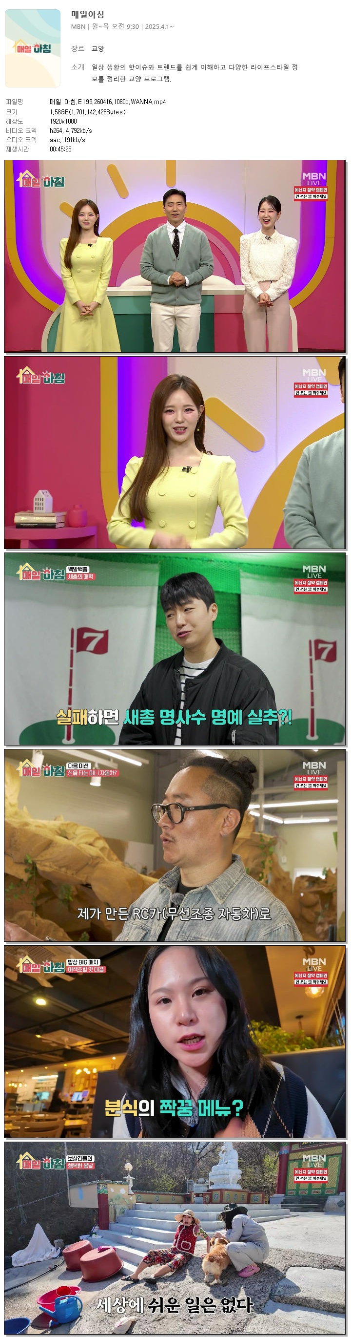 [MBN] 매일 아침.E199.260416.1080p.WANNA[한혜원, 이정수]