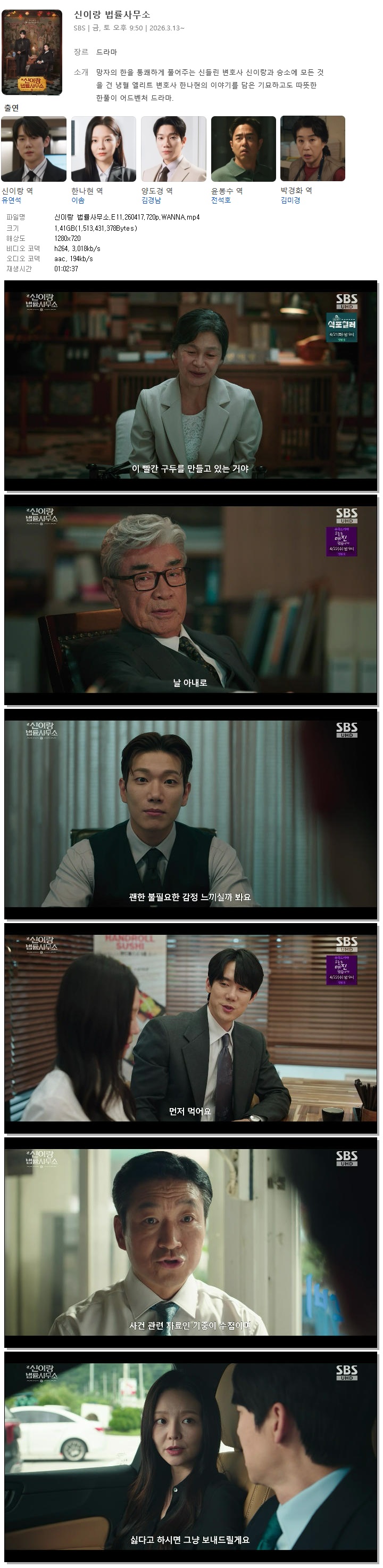 [SBS] 신이랑 법률사무소.E11.260417.720p.WANNA[유연석, 이솜].mp4