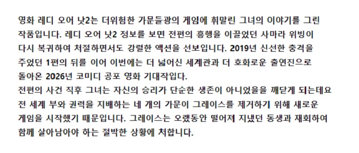 [레디 오어 낫2] 다시 목숨을 건 게임에 휘말리다 생존 서바이벌 자체자막
