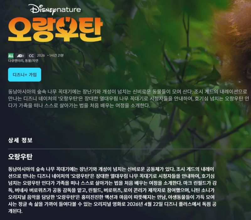 [다큐] 오랑우탄.Orangutan.2026.1080p.한글자막