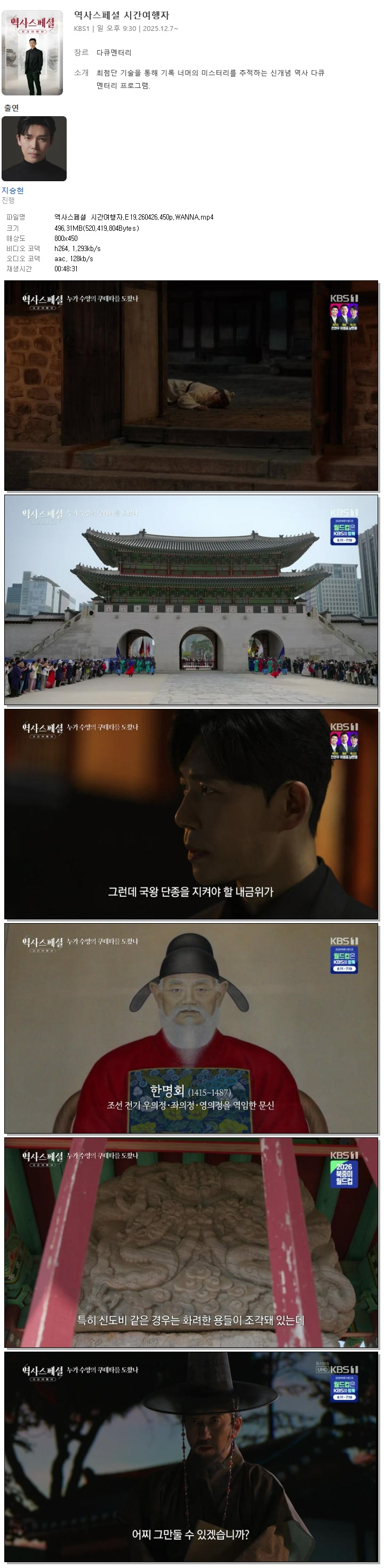 [KBS1] 역사스페셜 시간여행자.E19.260426.450p.WANNA[지승현]