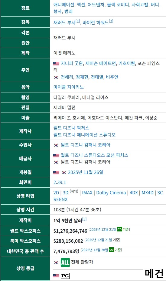 [우리말 더빙] 주토피아 2. 2025 (전편 이후 9년 만의 후속작)