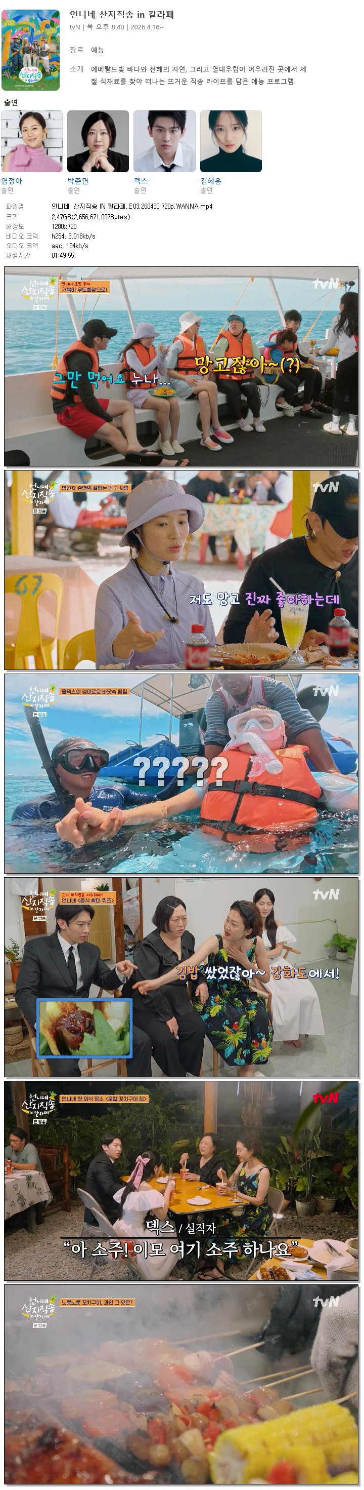 [TVN] 언니네 산지직송 IN 칼라페.E03.260430.720p.WANNA[덱스, 김혜윤].mp4